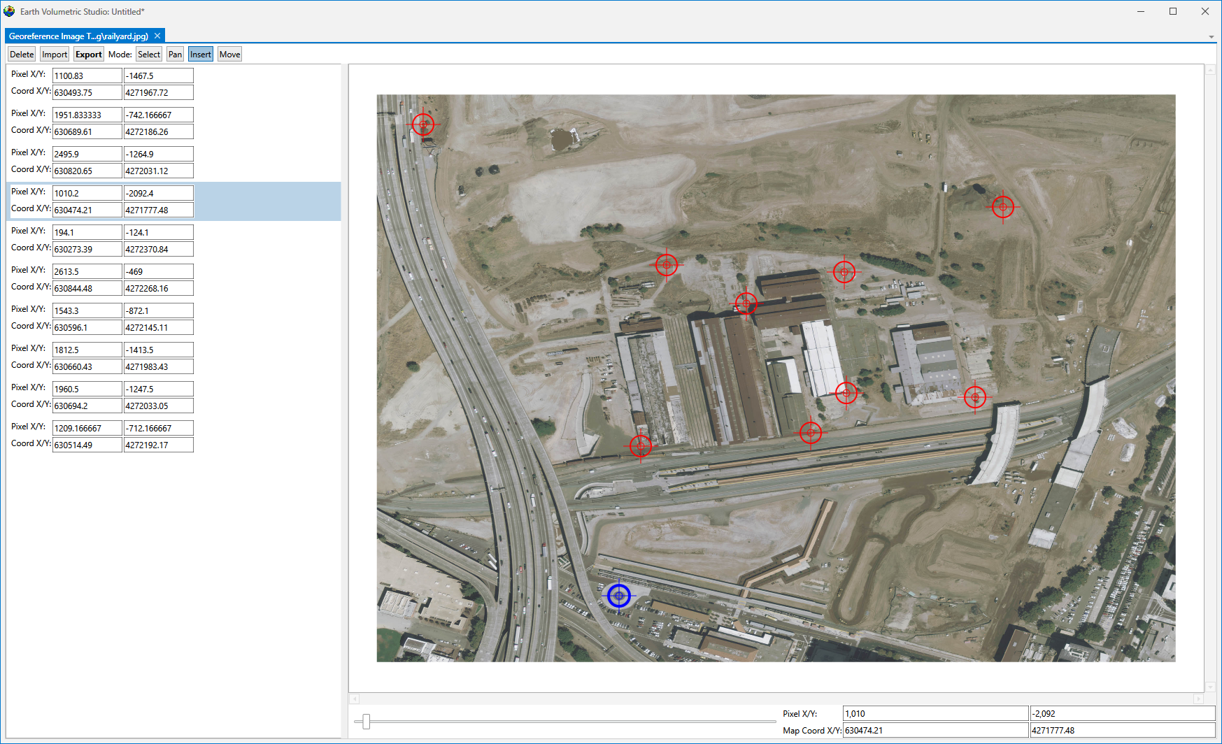 - A set of X-Y coordinates in your project coordinate system that define the locations of multiple distinguishable places in the image.