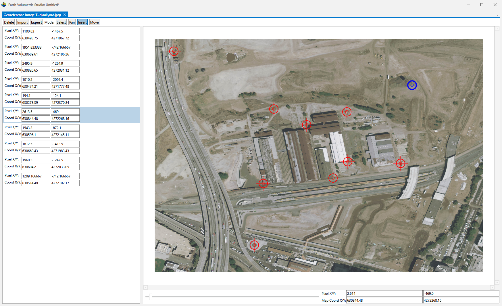 When you insert a new point, it will show up as a BLUE crosshair. You must then enter the correct X-Y location for that Pixel location.