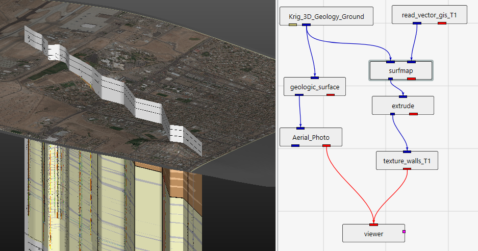 QUESTION: How can I cut one surface with another? For example, below I would like it if the projected cross-section image (texture_walls) was cut off at the ground surface (geologic_surface).