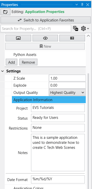 In the Application Properties, under Application Information, we add some basic information which will be used when exported to CTWS.