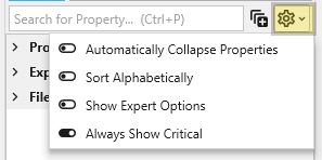 Further customization is available through the Options menu, accessible via the gear icon. These are global settings for the Properties window and allow you to change how properties are displayed.
