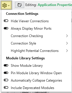 Show Module Library: Toggles the visibility of the Module Library.Pin Module Library Window Open: Keeps the Module Library panel open and prevents it from automatically collapsing.Automatically Collapse Categories: If enabled, module categories are collapsed by default.Include Deprecated Modules: Toggles the visibility of older, outdated modules in the Module Library.