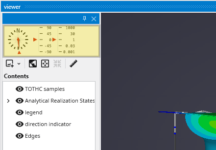 The Contents section at the bottom of the sidebar acts as a layer manager for your scene. It displays a hierarchical tree view of every object connected to the viewer module in the Application Network.