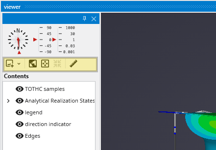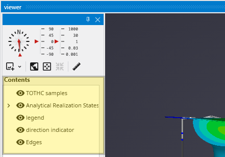 The Viewer window features a sidebar on the left that contains controls for orientation, scene management, and a table of contents