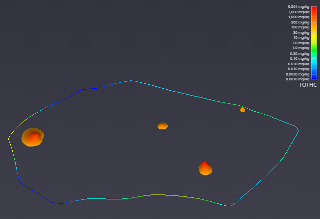 The viewer immediately reflects these changes. As a result, it now renders only the regions with a TOTHC value above 100, effectively further reducing the areas of high concentration. This feature allows you to interactively explore your data and isolate different phenomena within the dataset.