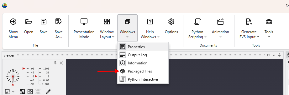 Which will open the Packaged Files window, if not open already.
