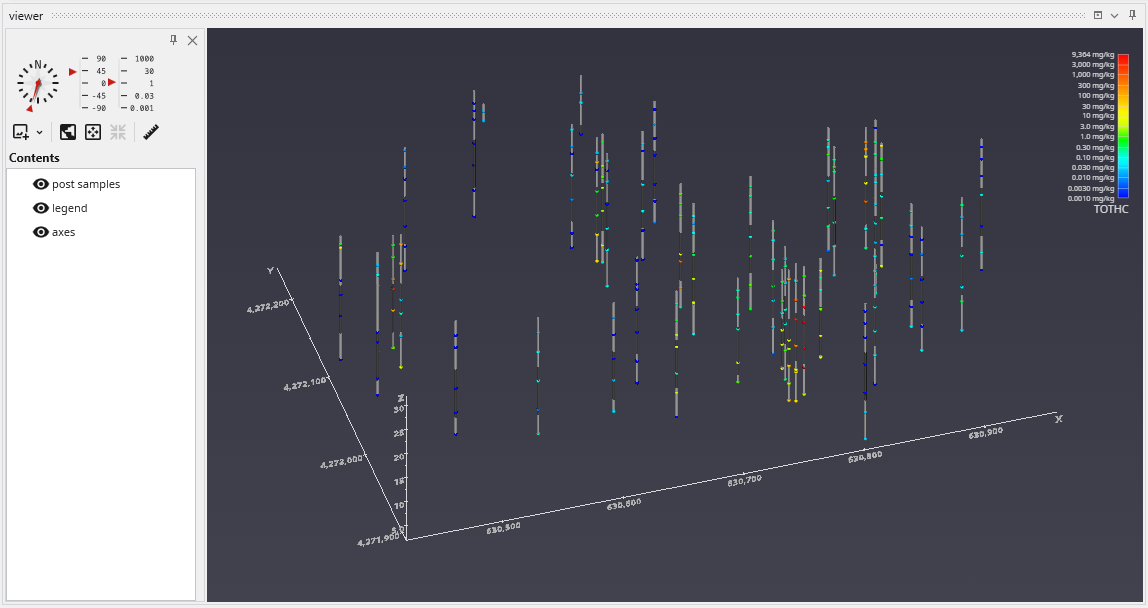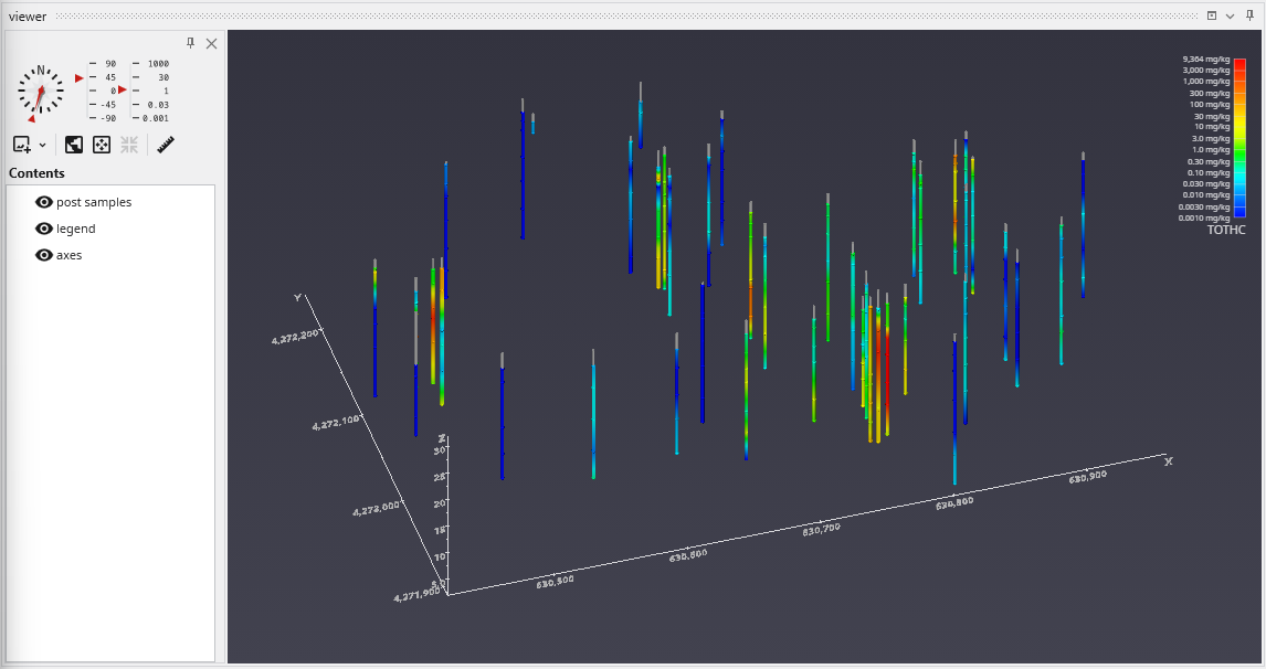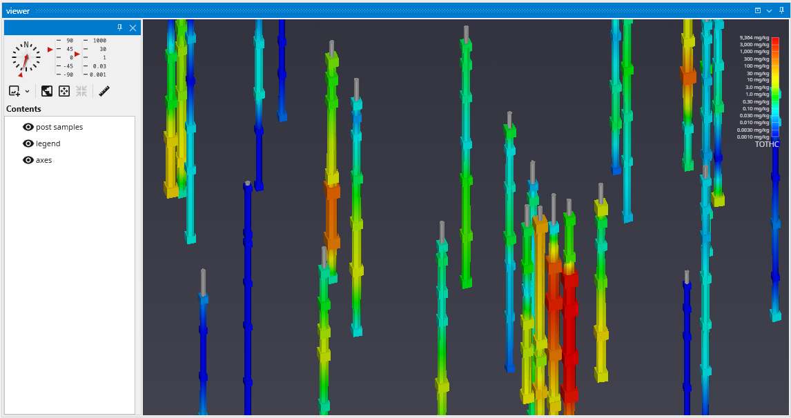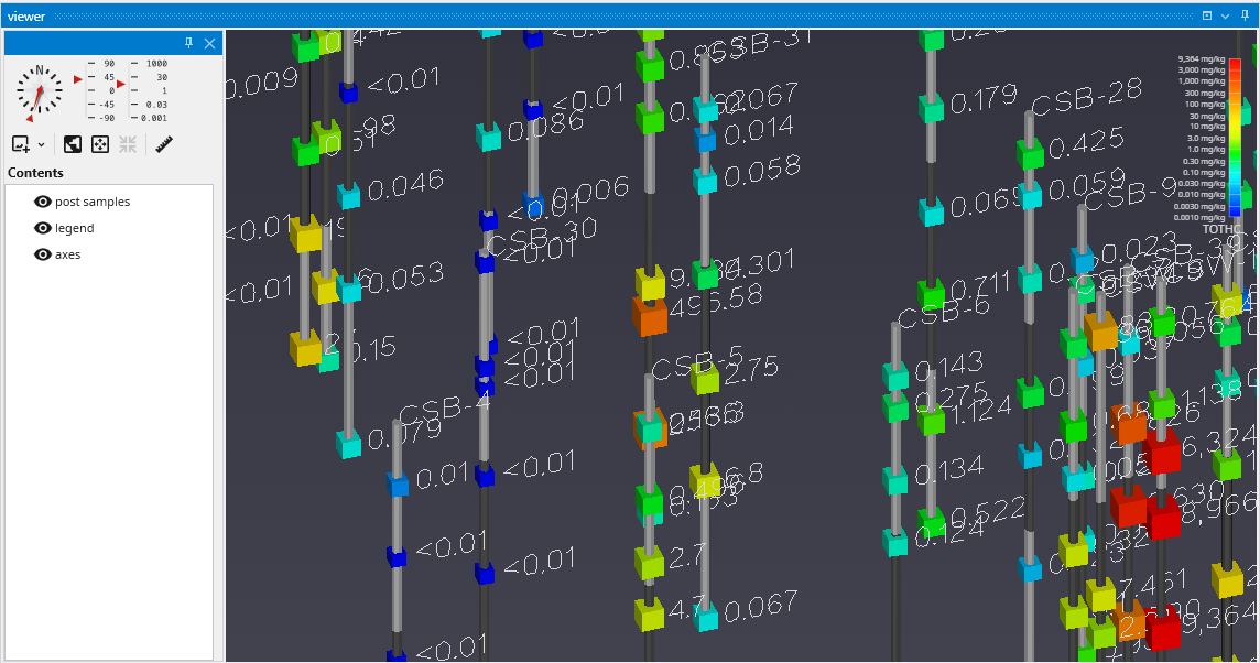APDV files represent analyte data which is measured at points. The data can be collected at scattered locations or along borings. When boring IDs are included in the file, post samples will draw the borings as well as the samples.