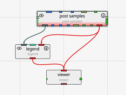 You can move the modules around so that your application and the associated connections between modules is as clear as possible. However, the arrangement (placement) of the modules does not affect how the application behaves. With legend our view becomes: