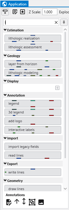 The image above demonstrates the default display of PGF (pregeology) files. The lithology intervals are colored by material and spheres are located at the beginning and end of each interval.