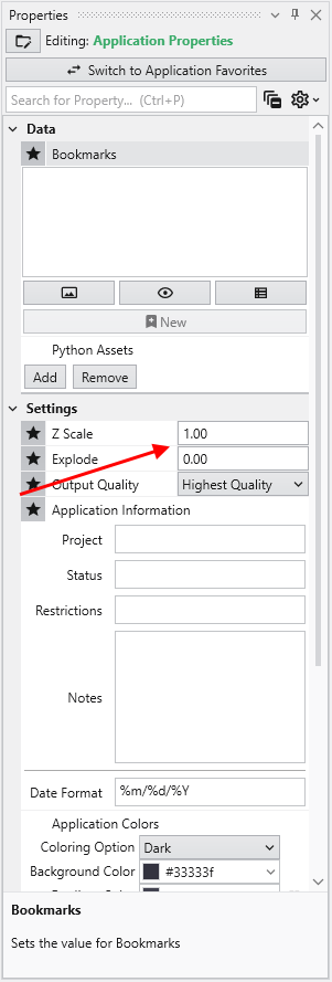 We find the Z-Scale parameter in one of 2 places. Either at the top of the Application window: