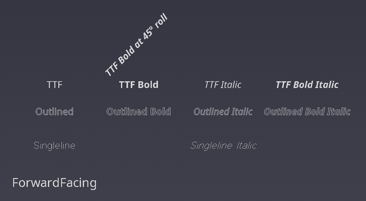 250.000000, 400.000000, 0.000000, 0, “TTF Bold at 45° roll”