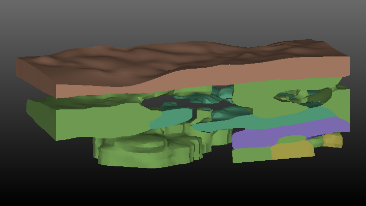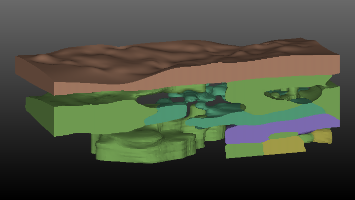 | Explode | Double | The Explode value is the distance between exploded layers, cell sets or materials. For example, an explode distance of 20 will separate each geologic layer by 20 feet from the layer above it and the layer below it. Note that the explode distance incorporates the scale factor, so that if a scaling factor of 5 is specified for a 10 foot thick layer to which an explode factor of 20 is applied, the geologic layers will be separated by 100 feet. |