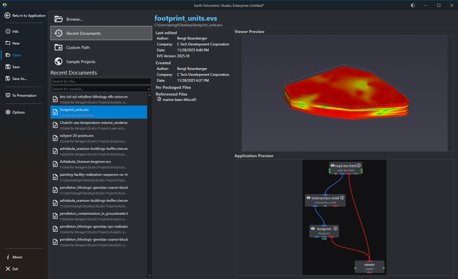 Metadata PanelAt the top, you will find key details about the file. This includes when it was last edited and by whom, its creation date, the software version used, and (for applications saved in recent releases) a list of any external files it references and any packaged data in the application.