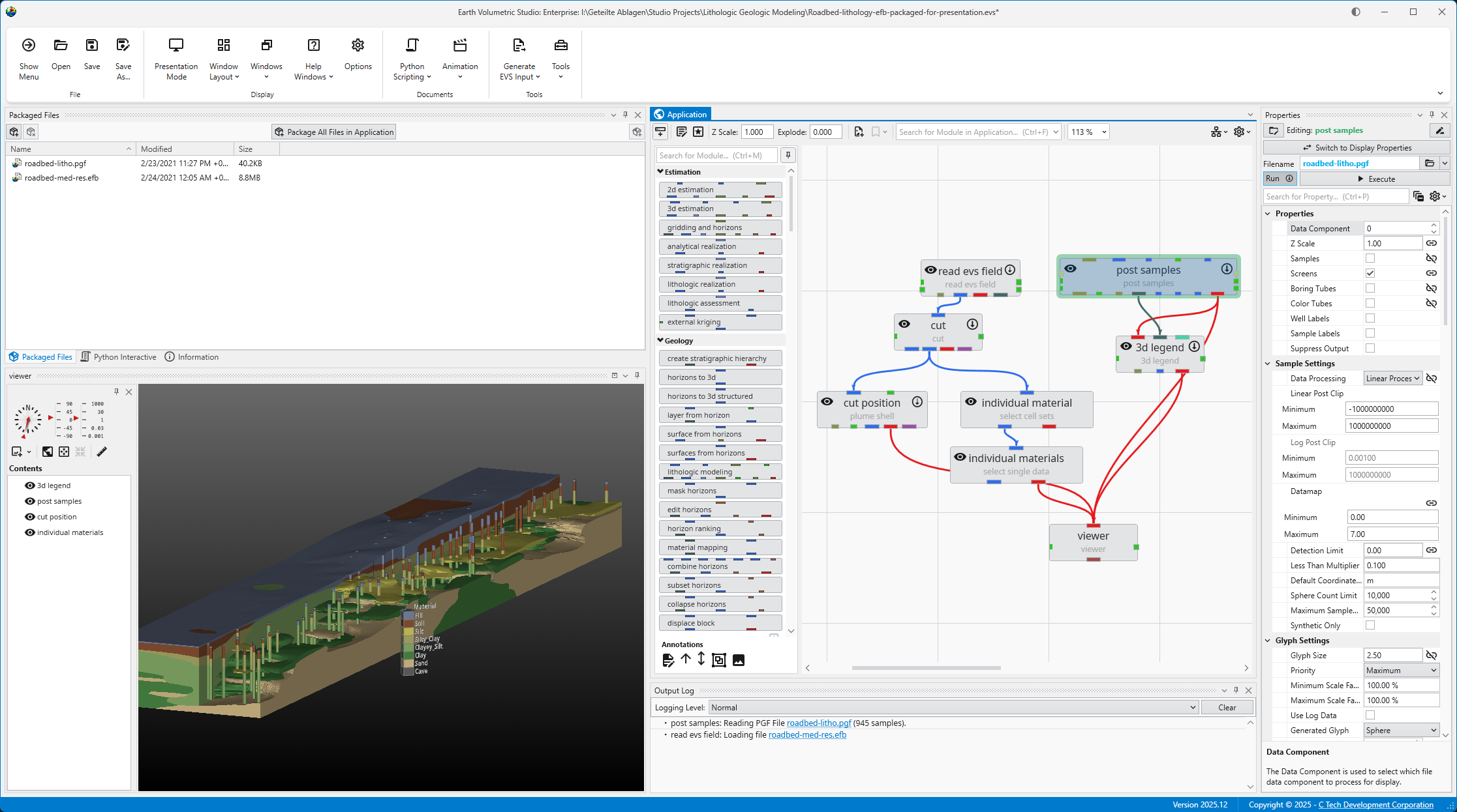 - The Information, Packaged Files, and Output Log windows are tabbed, with the Output Log active.