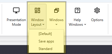 - Click the dropdown arrow next to the Window Layouts button in the Main Toolbar.