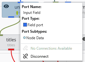 | No Connections Available / Connect from… | Indicates if compatible output ports are available. If so, it allows you to create a connection. |
