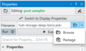 In every module with a file browser, you merely click on the drop-down button shown next to any filename property, and a Package button will appear.