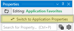 Alternatively, you can also access these when editing the Application Favorites. When the Application Favorites are displayed in the Properties window, click the Switch to Application Properties button at the top.